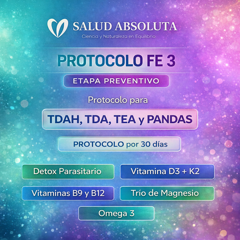 | Detox Parasitario | 60 ml líquido | Tomar en agua durante almuerzo y cena por 21 días. Iniciar en luna nueva. Repetir mensualmente por 2 años. |